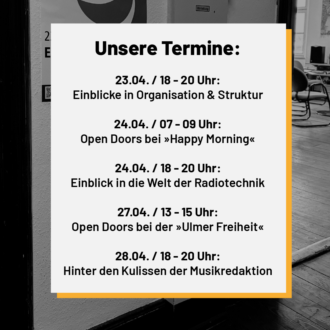 Diese & nächste Woche könnt ihr vorbeikommen und Einblicke hinter die Kulissen von Radio free FM in den Bereichen Radiotechnik, Musikjournalismus, Organisation etc. bekommen.