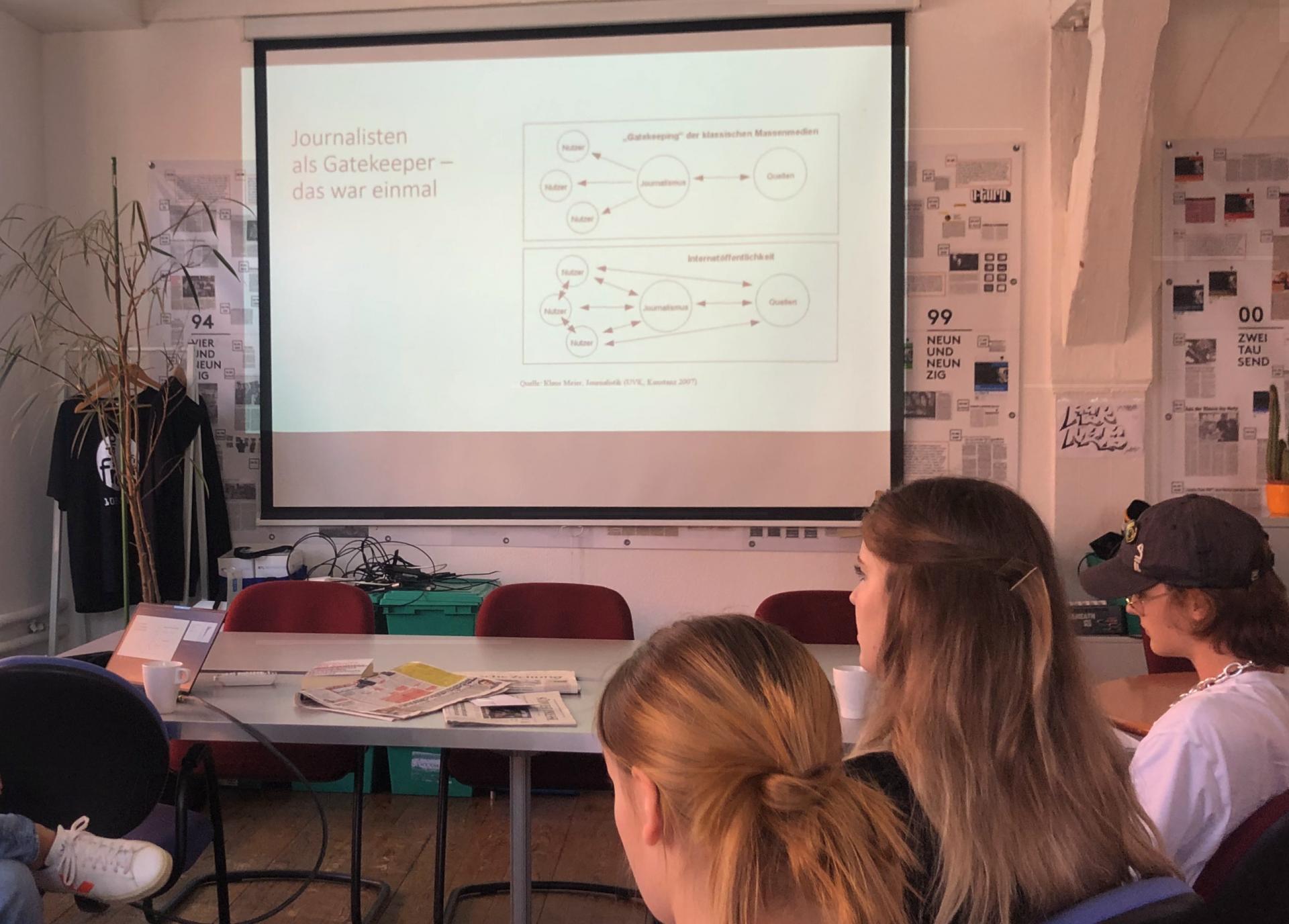 Ausgehend von der Frage „Was darf ein Journalist*in, was sollte er/sie besser unterlassen?“ wurden die 16 Richtlinien des deutschen Pressekodex anhand von Beispielen erörtert. Dabei ging es um speziell um die Achtung der Wahrheit, die Wahrung der Menschenwürde und die wahrhaftige Unterrichtung der Öffentlichkeit. Zusätzlich um die klare Trennung von redaktionellem Beitrag und Anzeigen, den Schutz der Persönlichkeit, die Achtung von Privatleben und Intimsphäre sowie die Vermeidung unangemessen sensationeller Darstellung von Gewalt und Brutalität und das Verbot der Diskriminierung einzelner Gruppen oder Nationalitäten. Nicht zu vergessen: die sorgfältige und faire Recherche. Welchen Stellenwert ihr zukommt, wurde gesondert dargestellt.