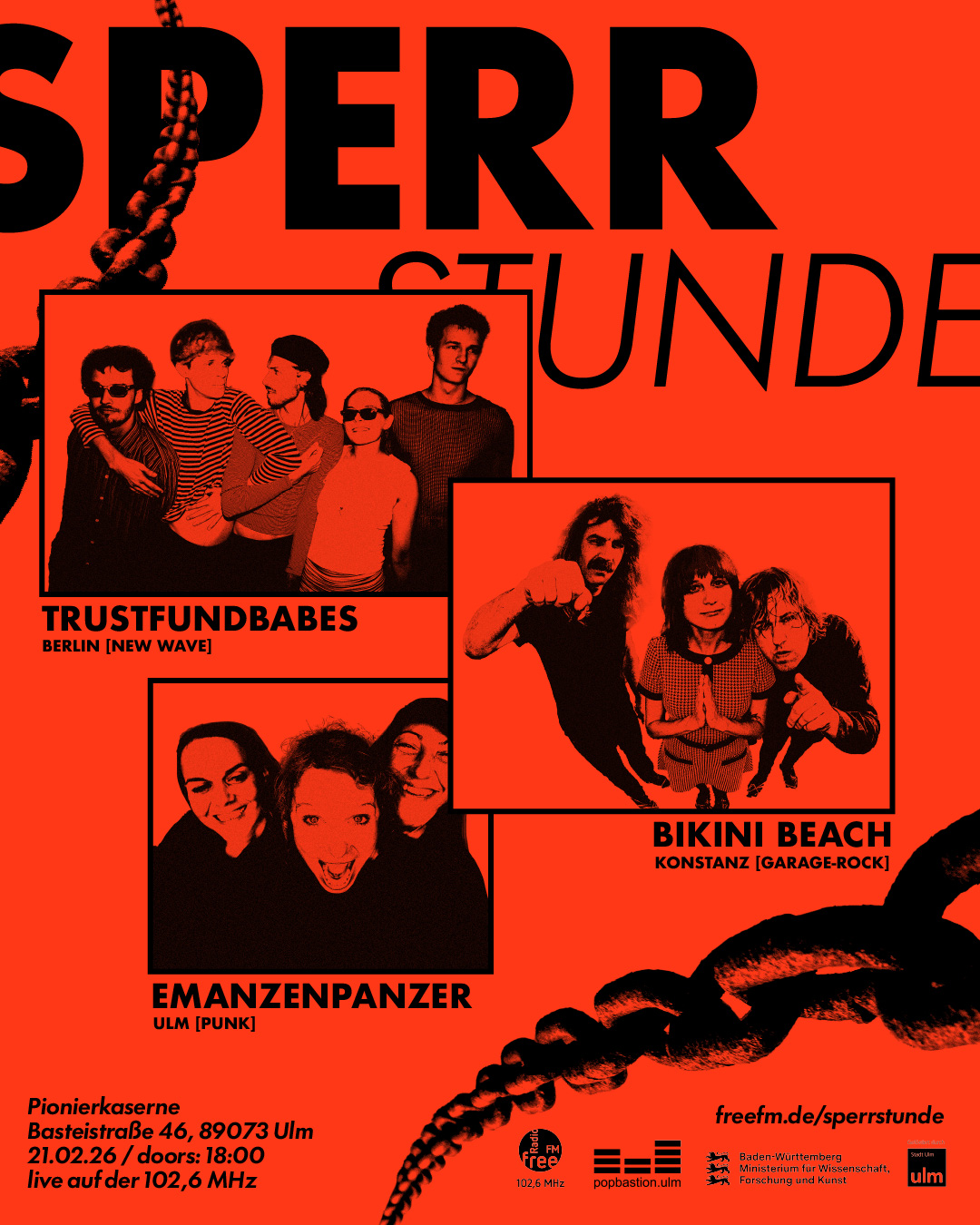 Dank der Förderung durch das POPLÄND-Programm „Perspektive Pop 2.0“ und der Stadt Ulm bringt Radio free FM gemeinsam mit der popbastion.ulm im ersten Quartal 2026 frische Livemusik auf die Bühne und direkt ins Radio.