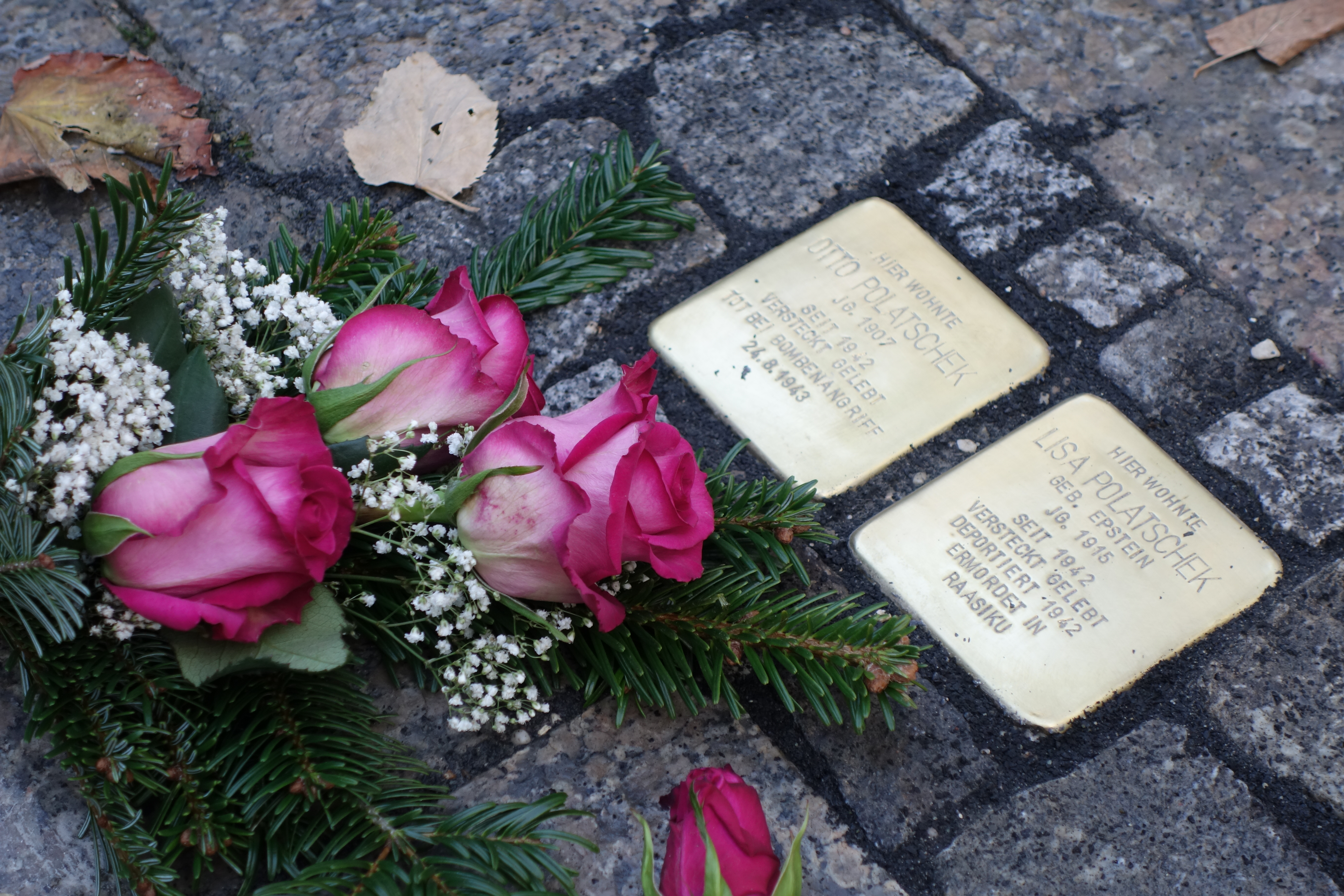 Stolpersteine mit Blumen