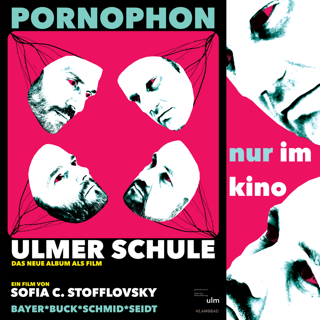 Pornophon ist eine Punkband aus Ulm und sie veröffentlichen trotz der widrigen Umstände ihr bereits 2020 imlegendären FAUST Studio in Scheer an der Donau aufgenommenes, neues Album „Ulmer Schule“ - es ist bereits diesiebte Studioaufnahme der im Jahr 1998 gegründeten Band. Jüngere Musikerkollegen bezeichnen die Truppe bereits alsdie "Rolling Stones von Ulm". Die 13 neuen Lieder sind nun zum ersten Mal in der Bandgeschichte zum allergrößtenTeil rein deutschsprachig getextet und erscheinen wie schon die Vorgängerplatte "Propheten" in Zusammenarbeit mitdem Label KLANGBAD, Heimat u.v.a. der Krautrockikone FAUST.Zur Veröffentlichung hat die Band in selbstausbeuterischer DIY-Manier einen abendfüllenden Kinofilm produziert -ohne grosses Budget haben dennoch alle eingespielten Songs ein eigenes Video bekommen, eine bizarreRahmenhandlung mit Studio-Gossip, Band-Background und aberwitzig-irren Songdetails dazwischen und fertig sind1:30h Musikfilm. Als ob man ein MTV Special im Kino anschaut! Alle Hintergründe zum Film, ob das wirklich der weltweit erste Kino-Album-Release Film ist? Antworten liefert Banne von Pornophon!