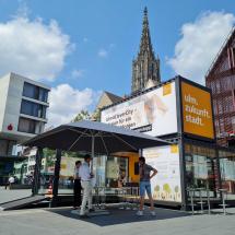 Die Digitale Agenda lädt ein zum "Boxenstopp": Vom 16. Juli bis 5. August wird der Hans-und-Sophie-Scholl-Platz vor dem Rathaus zur zentralen Anlaufstelle für aktuelle Informationen und Beteiligungsformate rund um die Themen Digitalisierung und Stadtentwicklung. Egal, ob man bereits über ein fundiertes Grundwissen verfügt oder sich der Digitalisierung in ersten zaghaften Schritten nähert - der Boxenstopp ist offen für alle, die ihre Stadt der Zukunft mitgestalten oder sich darüber informieren möchten, wie die Digitalisierung in Ulm in den Bereichen Mobilität, Zusammenleben, Umwelt und Energie, Bildung, Handel, Kultur und Verwaltung Gestalt annimmt.