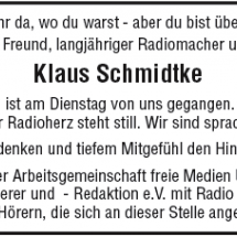 Alle sind dort herzlich willkommen um Abschied zu nehmen von Klaus Schmidtke!